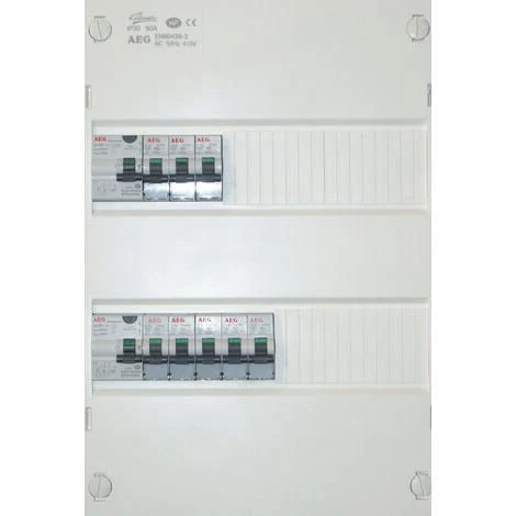 Ce coffret électrique AEG est réservé à l’extension d’une installation ou à la rénovation d’installations électriques. Livré précâblé, il est équipé de 2 rangées (8 disjoncteurs et 2 interrupteurs differentiels type A et AC). Les peignes phase et neutre sont montés câblés. Il est adapté à un logement ayant une superficie comprise entre 35 et 100 mètre carré. Il est certifié C15-100.