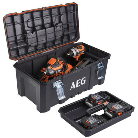 Caisse de rangement AEG 66.2x 33.4x 29cm – AEG26TB, caisse de rangement idéale pour ranger tous vos outils AEG. La caisse est doté d’attaches métalliques. Elle dispose d’une capacité de stockage de 63 litres.