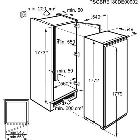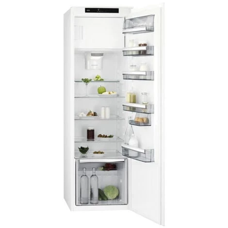 Réfrigérateur AEG SFE818F1DS DynamicAir encastrable 1 porte 282L Fonction Fast Freeze Blanc TYPE DE PRODUIT : Réfrigérateur, Frigo CARACTÉRISTIQUES : Réfrigérateur encastrable SFE818F1DS Aeg d’une capacité nette totale de 260 lt, indication numérique de la température et dégivrage automatique du compartiment réfrigérateur. Largeur : 55 cm. Hauteur : 177 cm. Mesure intégrée : 56 x 177 cm. Capacité : 282 litres. Capacité du réfrigérateur : 260 litres. Capacité du congélateur : 22 litres. Caractère sonore : 32 db. Absorption : 206 kW. Dégivrage automatique du compartiment réfrigérateur. Affichage numérique de la température. Fonction COOLMATIC (refroidissement rapide). Fonction FROSTMATIC (congélation rapide) avec désactivation automatique. Voyant et alarme sonore : porte ouverte. Eclairage LED. Classe d’efficacité énergétique F. 1 étagère avec couvercle. Charnière des portes : Droite et réversible. Installation : Installation : Encastré. Hauteur (mm.): 1772. Profondeur d’emballage (mm): 600. Largeur (mm.): 548. Profondeur (mm.): 549. Poids net (kg): 55. Poids brut (kg): 57. Hauteur du colis (mm): 1840. Largeur du colis (mm): 590. Puissance maximale absorbée (W): 130. Modèle : SFE818F1DS. Classe d’efficacité énergétique E20 : F. Consommation énergétique annuelle moyenne en kilowattheures par an (kWh/a) (Règlement (UE) 2017/1369) : 206. Volume du compartiment (Frais) E20 : 260. Volume du compartiment (4 étoiles) (Règlement (UE) 2017/1369) : 22. Classe climatique E20 : SN-N-ST-T. Capacité de congélation (section 4 étoiles) E20 : 5,7. Silence E20 : 32. Tension (V): 230-240. LONGUEUR : Dimensions (HxLxP): 1772x548x549 mm COLORIS : Blanc MARQUE : AEG